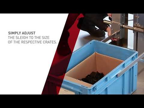 De kratten tilhulp helpt bij het stapelen, distribueren, opslaan of uitpakken van kratten. Hij tilt veel en zwaar en neemt zo je fysieke belasting weg. Bovendien kun je hoger stapelen en zo je opslag- en transportfaciliteiten efficiënter gebruiken.